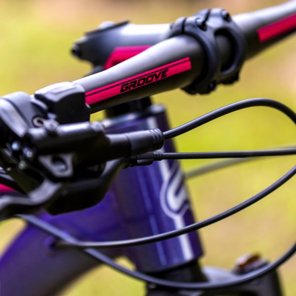 O cockpit da bicicleta Groove Indie 10 21 marchas com guidão de 700mm oferece mais controle e confiança durante a sua pedalada. A suspensão Groove com trava proporciona praticidade em suas trilhas.