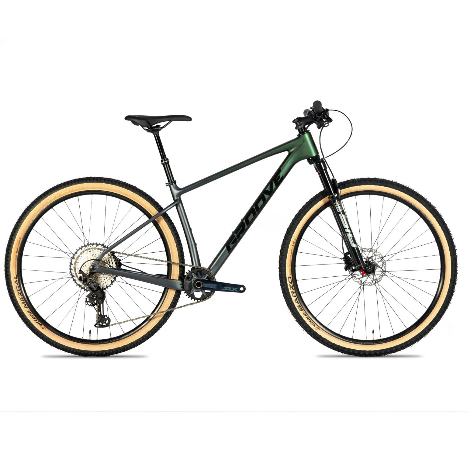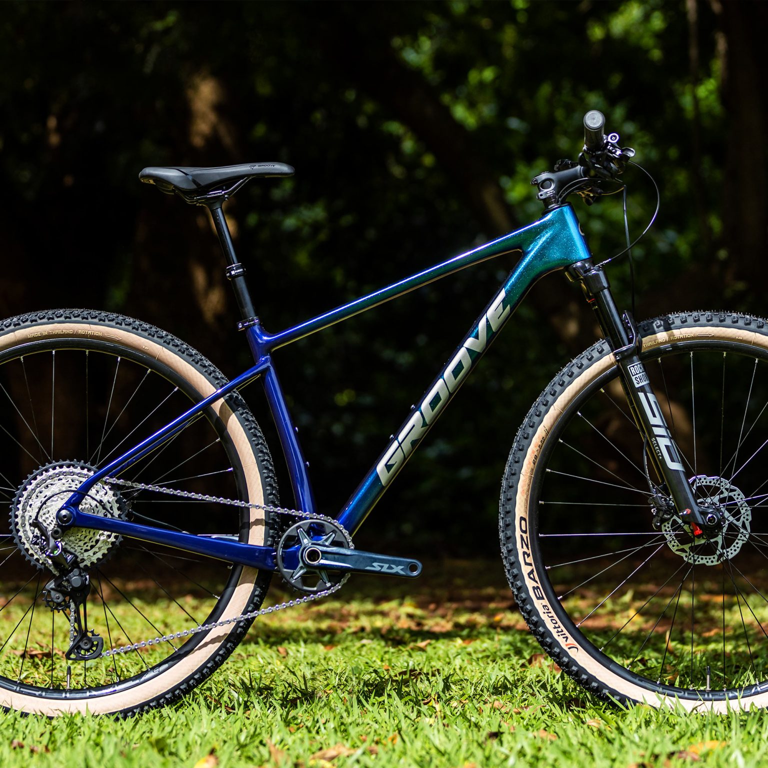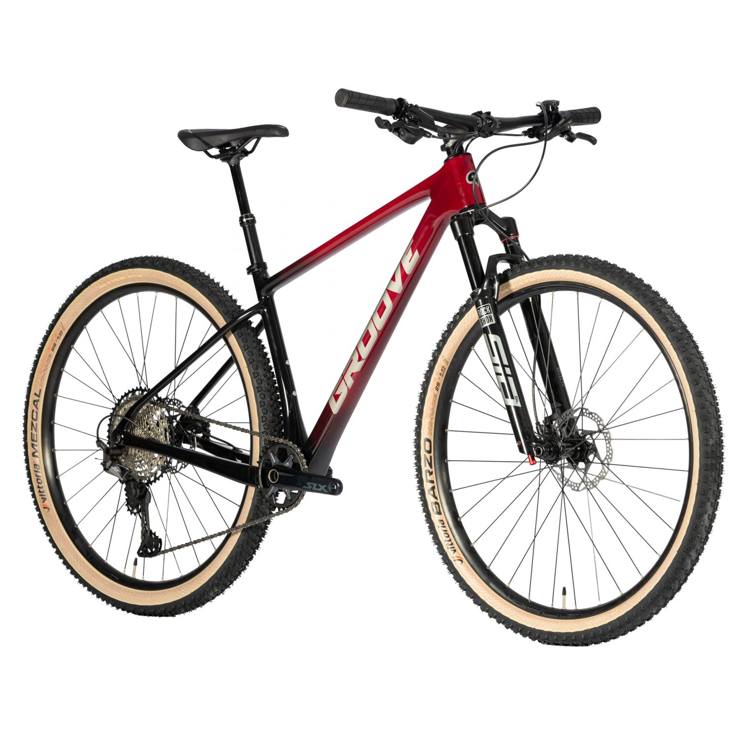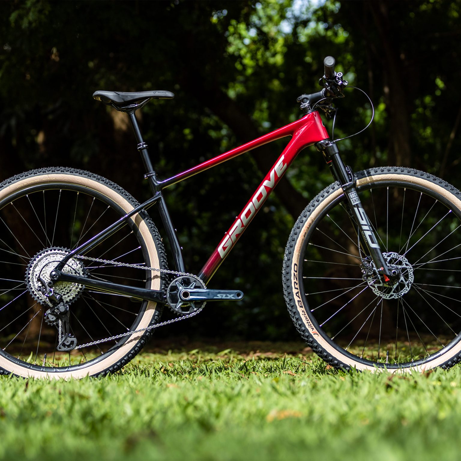 A bicicleta de mountain bike Groove Rhythm Carbon 9 é comercializada em 4 tamanhos: S (15.5) – M (17) – L (18.5) – XL (20.5) com pneus Vittoria XCR 2.25 aro 29, sendo o Vittoria Barzo na roda dianteira e o Vittoria Mezcal na roda traseira. A Rhythm Carbon 9 possui 2 anos de garantia para o quadro de carbono e 06 meses para os demais componentes. Pesa aproximadamente 11.3kg. Já o quadro avulso pesa 1.2kg.